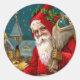 Classic Santa and Deer Christmas Round Sticker