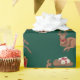 This festive pattern features a traditional Santa Claus, jolly and dressed in his iconic red suit, alongside graceful reindeer pulling sleighs filled with gifts. The rich green background enhances the holiday spirit, with detailed depictions of sleighs, reindeer, and Santa carrying his gift bag, ready for Christmas Eve deliveries. The warm vintage feel adds a nostalgic touch to this cheerful seasonal design.