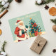Celebrate the magic of Christmas with this charming card featuring Santa Claus beside a decorated Christmas tree.