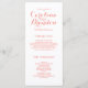 Elegant Wedding Programs. Coral pink text on white background. Design by Elke Clarke © Available at www.zazzle.com/monogramgallery. Customise with your background colour and all your personal information to create a simple yet sophisticated program which your ushers can hand out as your guests enter the church or are seated where the ceremony will take place. It helps people follow along during the ceremony but also acts as a keepsake for your guests. You can use the template fields to fill in the suggested information about your wedding party and order of service and thank you message or select "customise it" and use the edit menu to change the text spacing, fonts, colours as you wish to create your own wedding programs.