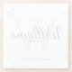 This coaster features personalised groomsman's name in grey classic script font style with wedding details in grey classic serif font style and monogram in light grey classic serif font style as background, on white background.