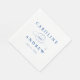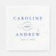 A classic wedding napkin featuring the couples names and elegant calligraphy script and with event date.