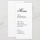 Present your wedding meal with timeless elegance using this classic wedding menu card design. Featuring a graceful script “Menu” header paired with refined typography, this minimalist layout creates a sophisticated presentation that complements formal and romantic wedding décor.