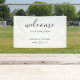 A beautiful way to welcome your guests to one of the most important days of your life with this wedding hanging banner sign. A minimalist classy welcome wedding banner sign with customized traditional script text. Customize and make it your own! Select the size of the banner you are after to suit your wedding needs.
