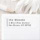 Make a statement with our elegant and versatile return address label, featuring a vertical black line on the left edge and your family name and address in classic serif typography. Add a clean, minimalist touch to your personal letters or professional correspondence. View the collection linked on this page for matching items or visit our store for more return address labels.