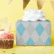 This classic wrapping paper features an elegant argyle pattern with diamonds in shades of silver and blue.