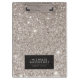 Coordinates with the Classic Silver Glitter Makeup Artist Business Card Template by 1201AM. A classic styling of your name or business name is set on a faux silver glitter background on this personalised clipboard. © 1201AM Design Studio
