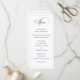 With classic elegance and timeless appeal, this wedding menu has lovely script flourishes calligraphy in the title text. A simple silver-grey border frames your text with contemporary style. The word Menu is presented in elegant calligraphy script. The remaining text on the front of the menu is set up in an easy to use template where you can edit with your planned menu. You can add or delete lines of text, resize or change the font style as well as move the text around to suit your requirements. To simplify the customisation of this menu, first select "personalise this template" to edit the text shown in the design template with your entries. Then, choose "edit using design tool" to open the full editor and make additional changes.