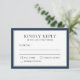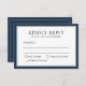 A tasteful wedding RSVP card with classic simplicity, this design features a navy blue border framing your text to draw the attention towards the details displayed on the response card. You can add, remove or adjust the placement of the text to suit your needs. The ever popular navy blue and white colour scheme work well for weddings in any season of the year and any time of the day or evening. Personalise the text template with your required response date.