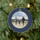 Classic simple navy herringbone personalised photo ceramic tree decoration