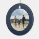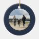A classic navy herringbone tweed frames a single photo on this simple personalised Christmas ornament. The back has a matching navy blue holiday tweed effect and has room for custom text. This photo ornament makes a great grandparent gift and is also a great way to remember a special occasion like a wedding, baby, new home, vacation and more. Celebrate the special memories with this classic Christmas ornament.