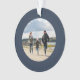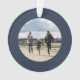 A classic navy herringbone tweed frames a single photo on this simple personalised Christmas ornament. The back has a matching navy blue holiday tweed effect and has room for custom text. This photo ornament makes a great grandparent gift and is also a great way to remember a special occasion like a wedding, baby, new home, vacation and more. Celebrate the special memories with this classic Christmas ornament.