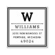Classic return address design features a decorative square frame with custom monogram initial and surname. Personalise with your name and return address.