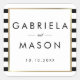 Classic stripe wedding faux gold foil square sticker with a classic black and white stripe background. These elegant wedding stickers feature an elegant faux gold foil border framing your names and special date set in chic typography. Designed by Thisisnotme©