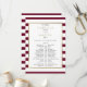 This elegant wedding schedule-timeline features an chic faux gold foil border framing your wedding details set in modern typography on a classic burgundy and white striped background. Designed by Thisisnotme©