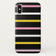 Classic stripes in pink, golden yellow and white colours against a black background.