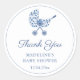 Thank you stickers intended for a baby shower or baby sprinkle. The design features a classic buggy / pram in a blue and white chinoiserie inspired pattern.