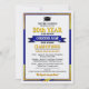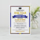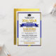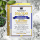 Great class reunion invitations in your school colours of blue and yellow, that you personalise with all your celebration details for your big reunion event. This design features a light background with darker text, gold corner accents and a graduation cap & tassle bordering the event details. Your school name is prominently featured on a gold banner right in the centre.