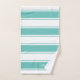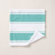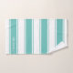 Minimalistic and chic bathroom towel set. This design features a modern teal and white striped theme with your personalised text included on the lower right hand corner of each item. This beautiful set includes a wash cloth, hand towel, and bath towel which can be purchased together or separately. This towel set would make a great gift for a bridal shower, a birthday or for a housewarming party.
