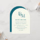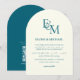 Classic Teal Blue Monogram Minimalist Wedding Invitation