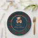 Classic Teddy Bear Navy Plaid Preppy Baby Shower Paper Plate