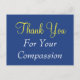This classic thank-you postcard design features the message "Thank You For Your Compassion" on the front, along with a personalised message on the back. It could be used to show gratitude to somebody who has done a special deed.