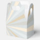 A vibrant bold colourful sun burst style graphic decor on a custom favour box.