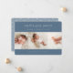 Elegant and classic birth announcement features three photos aligned side by side on a dusty blue background. Personalise with baby's name, birth stats, and your family signature in crisp white lettering.