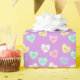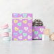 This cute wrapping paper features a Valentine's Day theme. The background is a violet purple with classic Valentine heart candy. The colourful candies feature various sayings.