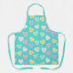 This stylish apron features a cute Valentine's Day theme. The background is a teal or aqua colour, filled with retro Valentine heart candy. The colourful candies feature various classic sayings.