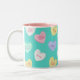Classic Valentine's Candy Hearts on Teal Two-Tone Coffee Mug