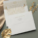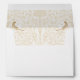 This elegant wedding envelope is the perfect complement to a Victorian-themed invitation suite. The exterior is a vision of understated elegance, with the names presented in a beautiful gold script that exudes sophistication. As the envelope unfolds, the interior reveals a stunning Victorian floral motif in shades of gold and cream, mirroring the detailed design of the invitation itself. The envelope design subtly includes the initials of the couple, nestled within the artwork, signifying the coming together of two lives. This envelope promises an experience of timeless romance and exquisite taste for your treasured wedding correspondence.
