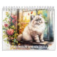 Classic Watercolor Twelve Cat Breed Flowers 2025 Calendar