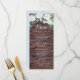 This classic white flowers rustic wedding dinner menu card is perfect for a fall wedding. The elegant floral design features soft ivory and white roses, peonies, and chrysanthemum with touches of periwinkle blue watercolor flowers and green foliage on a faux brown wood background. This menu can be used for a wedding reception, rehearsal dinner, or any event.
