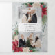 This classic and traditional design features two photo templates with centre blank element for your personalisation on a background of watercolor style poinsettias, white roses and pine on a misty grey background. The panels features an additional three photo templates as well as editable text fields on a complementary grey watercolor background.
