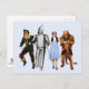 This enchanting postcard features a timeless illustration of the beloved main characters from "The Wizard of Oz," set against a soft, light blue background. Dorothy stands prominently in her iconic blue gingham dress and ruby slippers, flanked by the Scarecrow, the Tin Man, and the Cowardly Lion, all arm-in-arm and ready for adventure. The characters are depicted in their classic vibrant appearances from the beloved film. This delightful postcard is perfect for sending warm wishes to fans of all ages, celebrating the enduring magic and friendship of this classic story.