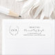Traditional and classic black and white wedding return address label featuring a wedding crest with your monogram inside of a wreath along with your names in a script / calligraphy. These simple yet elegant return address labels are great for a formal wedding invitation suite.