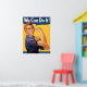 Women doing men's jobs during World War II. The vintage "We Can Do It" poster by Westinghouse featuring a woman showing her strong arm. A classic motivational propaganda illustration.