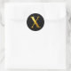 Classic Yellow Gold Foil Monogram X on Black Round Sticker