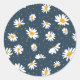 Classic Yellow White Daisy Flowers Navy Round Sticker