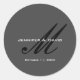 Classical Calligraphy Monogram Wedding Grey Classic Round Sticker