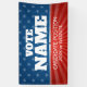 A stunning stars and stripes campaign banner with very traditional features and icons. A neo-classical and federal design with faded blue stars and a ray of red stripes in the background. This upscale design includes a place for the candidates' name, position and website. The bold white type makes this an easy-to-read design with all the information needed to promote your candidate or issue. A great design for local elections - city council, school board and other regional positions.