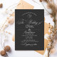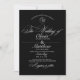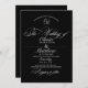 Modern stylish black and white minimalist wedding invitation with an elegant handwritten font with curls and a monogram of the bride and groom. Classy and elegant, simple and modern invitation.
