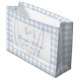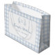Cute light pastel blue French inspired baby boy shower gift bags with elegant gingham pattern.