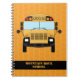 Cool school notebook printed with a yellow school bus pattern, with a black stripe across the bottom to add your bus driver's or school's name