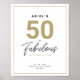 Simple black, white and gold "50 and Fabulous" birthday party sign with classy and elegant typography. Customize it easily with age, name, party date and venue.