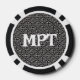 These poker chips have a classy abstract pattern done in a damask design that is black and white with curled white scrolls. Customise your initials or text with the templates.