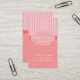 Classy and Elegant, pink stripes and different shades of pink as background. Bracket frame with stitch effects for indicating details. This striking business card with its simple colours and clean look is ideal for anyone who is looking for a memorable yet professional business card design. Design is suitable for the ladies who are doing freelance or start-up business owners. Designed by Rusty Doodle.