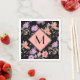 Classy Black and Blush Coral Pink Floral Monogram Napkin