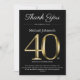 Classy Black and Gold 40th Birthday Thank You Card